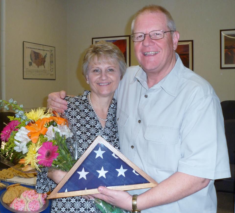 This picture was taken of my dad and mom after the retirement ceremony. He received this American flag that had been flown in an F-16 along with a certificate and a letter recognizing and thanking him for his 34 years of service to the US Air Force. My mom also received these flowers and a certificate along with a letter for her support of my dad's service during that time. As well, both my brother and I each received a letter for supporting him in his work. I thought that was all pretty cool! And lastly, he will also be receiving a letter in the mail from the President thanking him for his service. Not bad for a 34 year career!